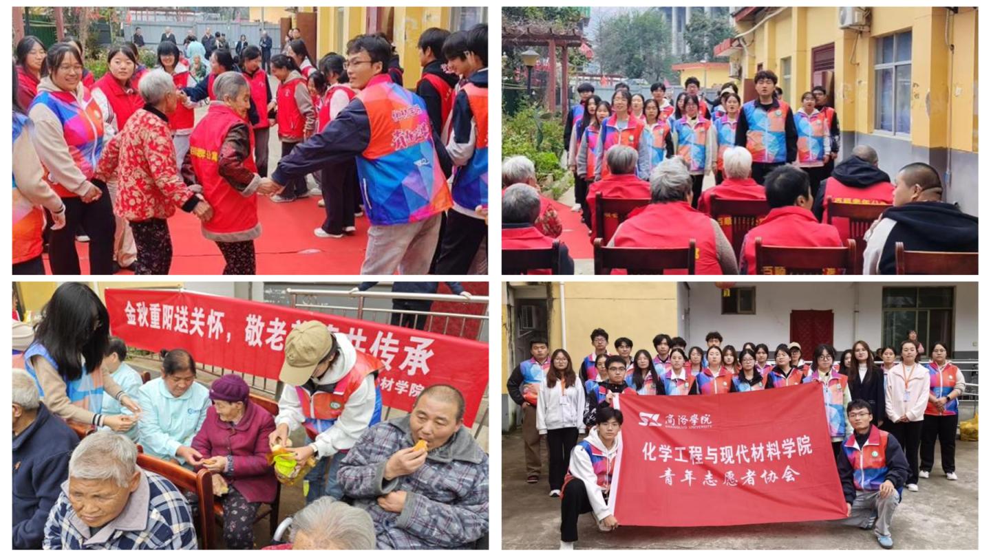 金秋重陽之際,為弘揚中華民族尊老敬老傳統(tǒng)美德,10月29日,化學工程與現(xiàn)代材料學院團總支社會實踐部赴商洛市百順山莊老年公寓,開展“金秋重陽送關(guān)懷,敬老美德共傳承”志愿服務活動。志愿者們?yōu)槔先藥砹宋璧?、朗誦、相聲等精彩節(jié)目,活動中還分發(fā)了慰問品,并傾聽老人故事,與老人們親切交流,用青春活力傳遞溫暖。
