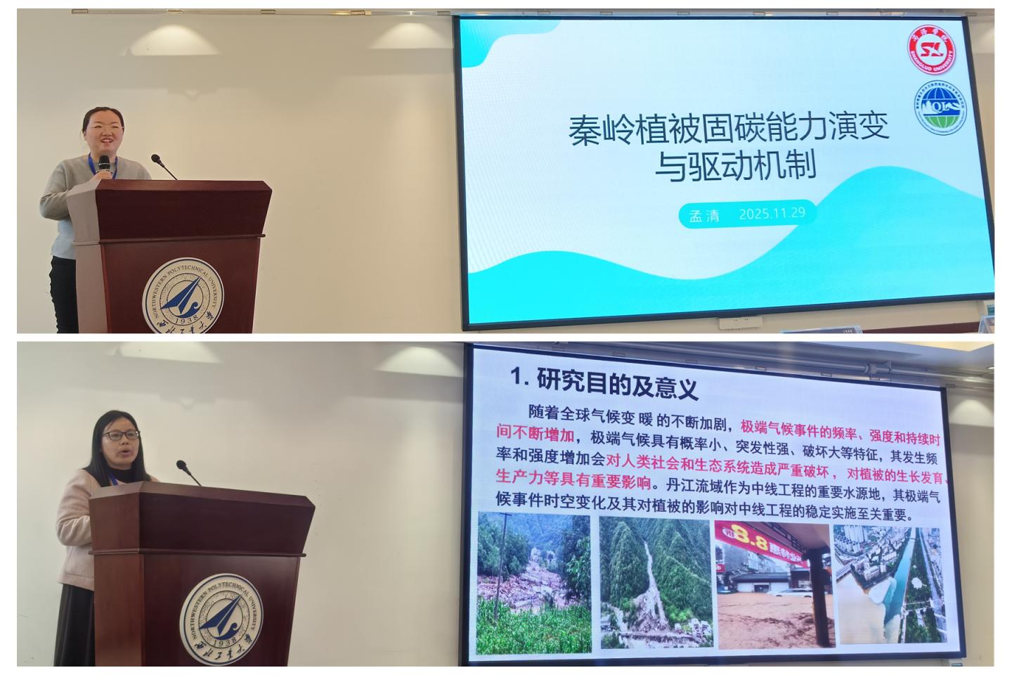 作為秦嶺南麓生態(tài)水文陜西省野外科學(xué)觀測(cè)研究站的核心成員,兩位教師分別作了“秦嶺植被固碳能力演變與驅(qū)動(dòng)機(jī)制”和“丹江流域近40年來(lái)極端氣候事件對(duì)NPP的響應(yīng)研究”為題的會(huì)議報(bào)告。孟清博士以秦嶺地區(qū)NPP、GPP、NEP等指標(biāo)揭示了秦嶺植被固碳的時(shí)空變化規(guī)律及未來(lái)發(fā)展趨勢(shì),并以機(jī)器學(xué)習(xí)算法挖掘了其驅(qū)動(dòng)機(jī)制。楊維鴿副教授系統(tǒng)揭示了氣候變化背景下,丹江流域的極端氣候事件的時(shí)空變化特征以及極端氣候事件對(duì)NPP的響應(yīng)特征,為氣候變化及植被變化相關(guān)研究提供了科學(xué)借鑒。