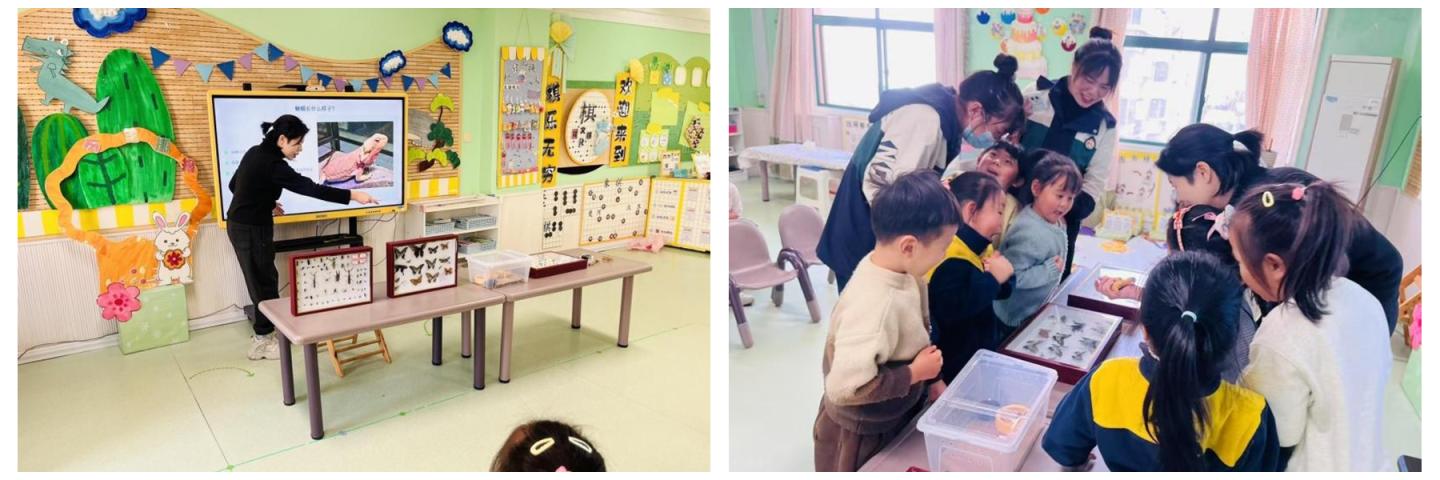活動(dòng)中,李麗以“神秘的爬行動(dòng)物”為切入點(diǎn),通過生動(dòng)的語言和直觀的現(xiàn)場(chǎng)展示,向小朋友們介紹了蜥蜴的外形特征、生活習(xí)性和生存本領(lǐng)。在昆蟲認(rèn)知環(huán)節(jié),李麗現(xiàn)場(chǎng)展示了包括蝴蝶、甲蟲、蜻蜓等多種昆蟲標(biāo)本,并引導(dǎo)小朋友們觀察標(biāo)本形態(tài)、解答相關(guān)問題。小朋友們認(rèn)真觀察標(biāo)本、分享感受,現(xiàn)場(chǎng)互動(dòng)氛圍熱烈。